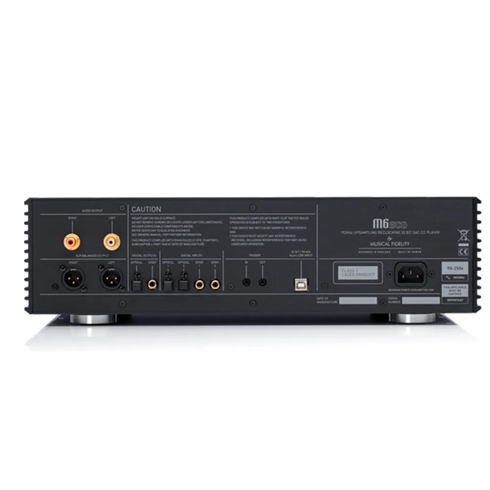 Ohišje M6sCD je izdelano iz visokokakovostnih materialov, ki zagotavljajo stabilnost, dolgo življenjsko dobo in zmanjševanje vibracij za nemoteno delovanje. Dimenzije 440 x 125 x 385 mm in teža 11,2 kg ga naredijo trdnega in vzdržljivega. Na voljo je v elegantni črni ali srebrni barvi, ki se brezhibno zlije z ostalo avdio opremo.
