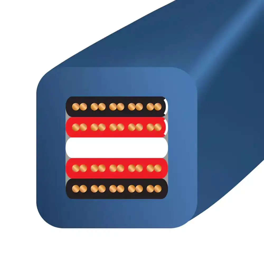 Wireworldovi kabli za avdio zvočnike imajo patentirano zasnovo DNA Helix, ki je bila zasnovana za zmanjšanje elektromagnetne izgube. Vrhunska zasnova in najkakovstnejši materiali jasno ovržejo splošno prepričanje, da žica zvočnika potrebuje le večji premer. Zvočniški kabli Wireworld vam bodo omogočili vznemirljivo izkušnjo poslušanja. Cilj Wireworldove patentirane kabelske tehnologije DNA HELIX je omogočiti poslušalcem, da doživijo svojo glasbo brez izgub in obarvanosti, ki jih običajno povzročajo kabli. Poligrafsko testiranje kaže, da so primarni zvočni učinki kablov posledica elektromagnetnih učinkov. Učinek, imenovan upor vrtinčnega toka, ki se poveča, ko se niti zvijajo, je še posebej problematičen, ker prikrije tihe glasbene podrobnosti. Za premagovanje teh težav so verige v zasnovah DNA HELIX popolnoma vzporedne, kar zagotavlja najbolj neposredno signalno pot za najmanjši upor vrtinčnih tokov. Ti vzporedni prameni potekajo znotraj ploščatih vodnikov, ki usmerjajo elektromagnetno energijo in zavračajo motnje. Poleg tega je v analognih kablih razmik med pozitivnimi in negativnimi vodniki natančno nastavljen na uho, da se ujema s čistim zvokom neposredne povezave. Učinek tega uglaševanja je kot fokusiranje leče, s čudovitimi teksturami in dinamiko glasbe v živo, ki pridejo v živo 3-D izostritev, ko je razmik ravno pravi.